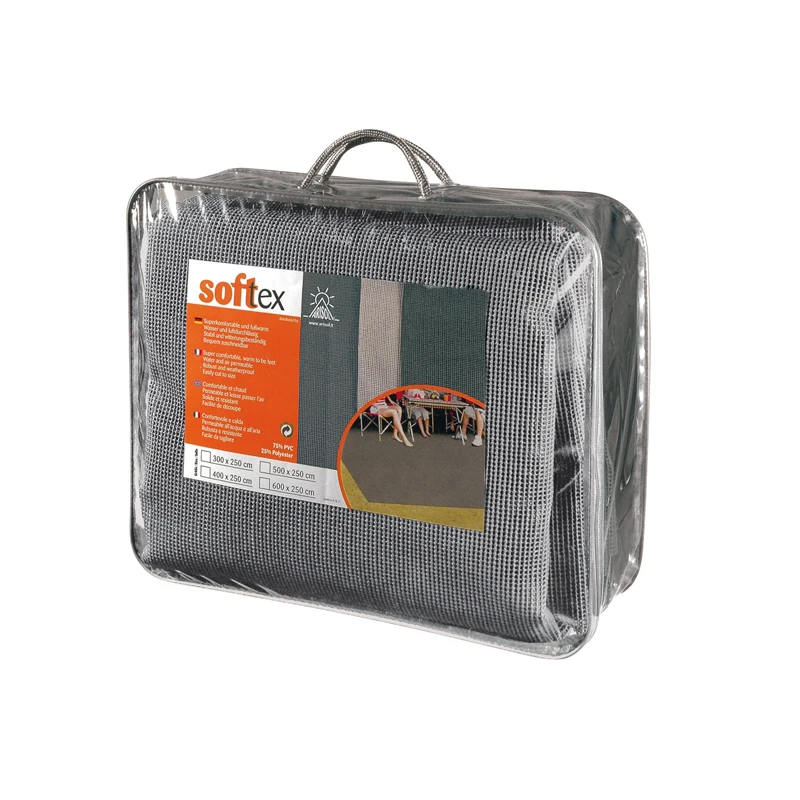 Sehr strapazierfähig, absolut witterungsbeständig, atmungsaktiv und leicht zu säubern. Ideal für Zelt, Vorzelt, Terrasse und Balkon.
