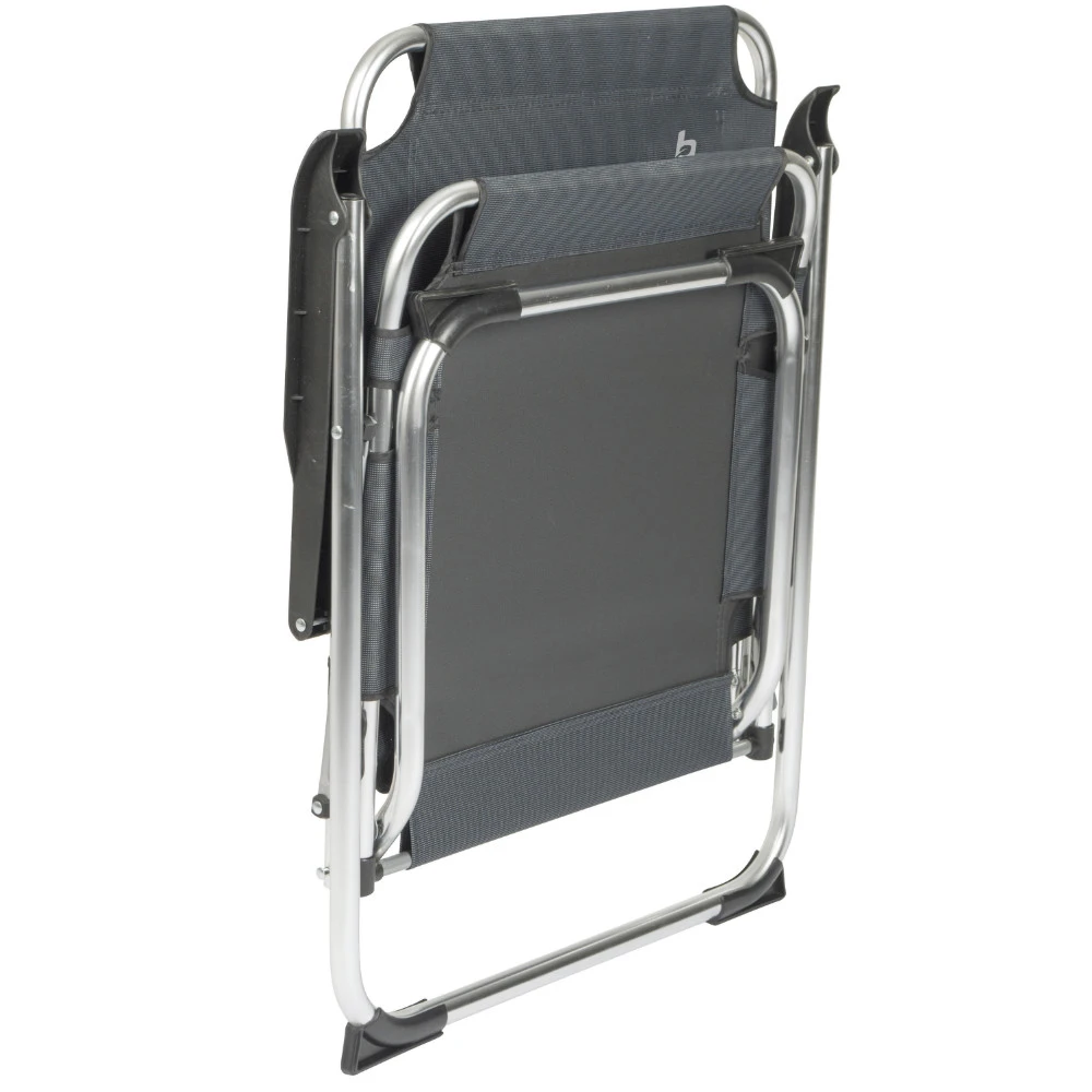 Ein extra breiter und hoher kompakter Klappstuhl. Dieser Stuhl vereint Stil, Komfort und Funktionalität. Mit luxuriösem zweifarbigem 600-Den-polyesterstoff und einem leichten Aluminiumrahmen. Dieser Stuhl verfügt zudem über extra Stabilisatoren und eine Sicherung (Safety-Lock) gegen unbeabsichtigtes Einklappen. Kompakt zu transportieren.