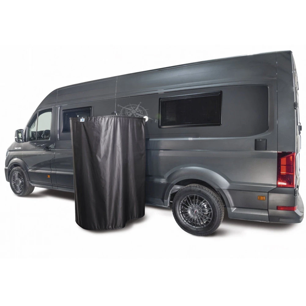 Platzsparender Outdoor-Duschvorhang für ein erfrischendes Duscherlebnis im Freien. Die Magnetbefestigung sorgt dafür, dass der Lack nicht verkratzt wird. Im Lieferumfang enthalten sind der Duschvorhang, ein klappbarer Edelstahlbogen, Magnetbefestigung, eine magnetische Halterung für den Duschkopf (bestehend aus einem 43 mm gummierten Magnet und zwei 88 mm gummierten Magneten in Weiß), eine Montageanleitung und eine praktische Transporttasche.