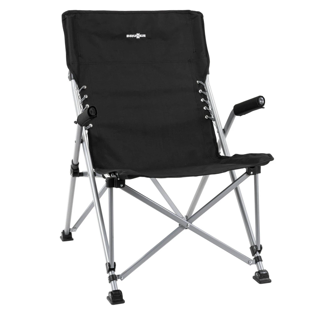 Komfortabler Faltstuhl mit elastisch geschnürter Rückenlehne aus robustem Polyestergewebe und robustem, pulverlackiertem Stahlgestell. Vier Standbeine mit schwenkbaren Bodenplatten sorgen für hohe Standfestigkeit auch auf weicherem Untergrund. Sekundenschnell einsatzbereit und kompakt klappbar. Mit Packsack.