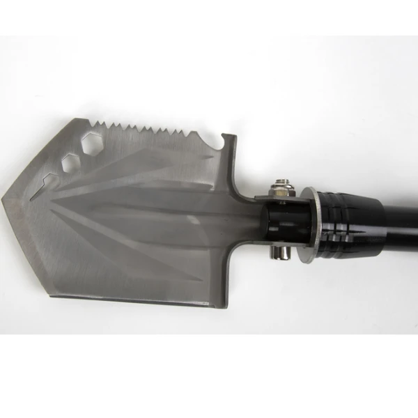Die klappbare Mini-Schaufel ist multifunktional verwendbar als Schaufel, Schraubenschlüssel, Flaschenöffner, Messer, Säge, etc. Sie wird in einer praktischen Tasche geliefert.
