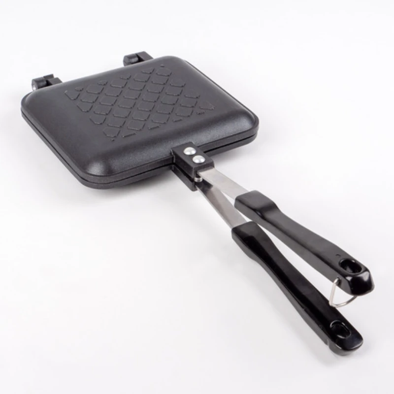 Sandwich Maker mit Antihaftbeschichtung und kühlem Griff für Gaskocher. Auch getrennt als zwei Pfännchen verwendbar.