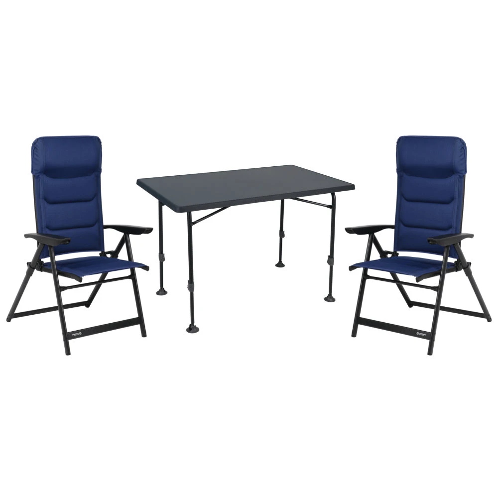 Dieses Set besteht aus 2 x Camperdice Sessel Evolution in schwarz (Art.-Nr. 19820880) und 1 x Camperdice Tisch Evolution 100 (Art.-Nr. 19821198).