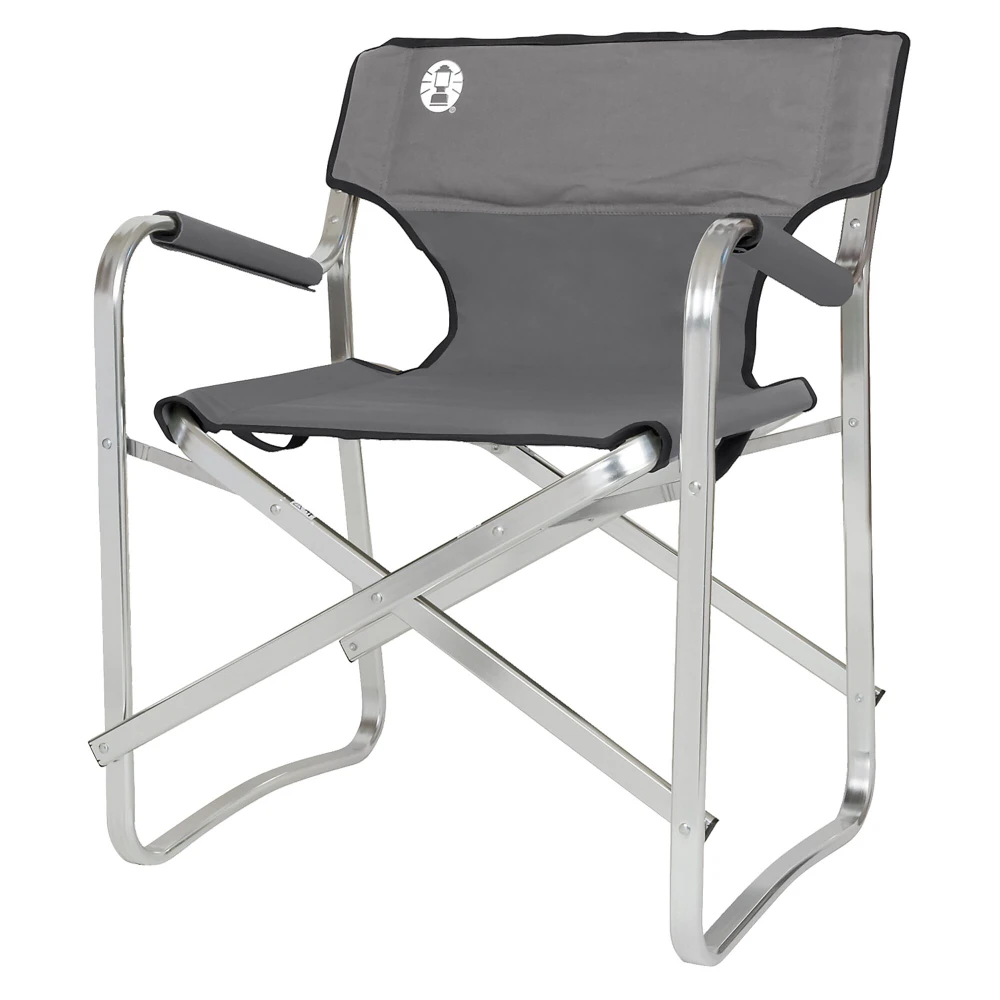 Leichter Campingstuhl mit gepolsterten Rücken- und Sitzflächen, abnehmbaren und waschbaren Schaumstoffarmlehnen, Aluminiumrahmen, eingebauten Tragegurten für mehr Komfort und einer Belastbarkeit von 113 kg.