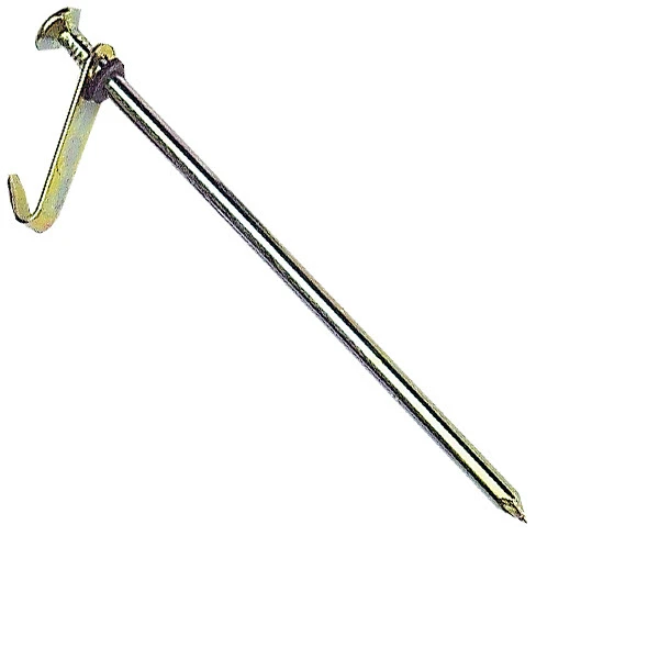 Erdnagel aus 7 mm Rundeisen – 21 cm lang verzinkt mit drehbarem Haken. Für harte steinige Böden bestens geeignet