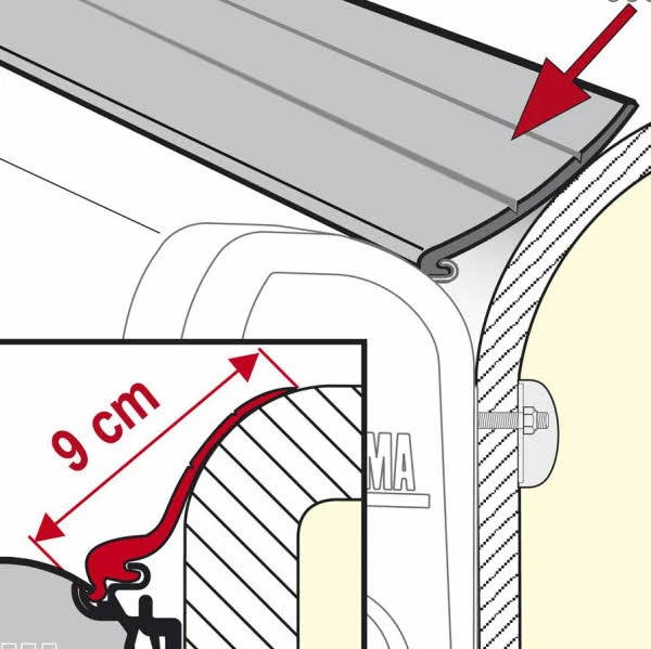 Abdichtung gegen eindringendes Wasser zwischen Markise und Fahrzeugwand. Wird installiert ohne die Markise abzubauen.