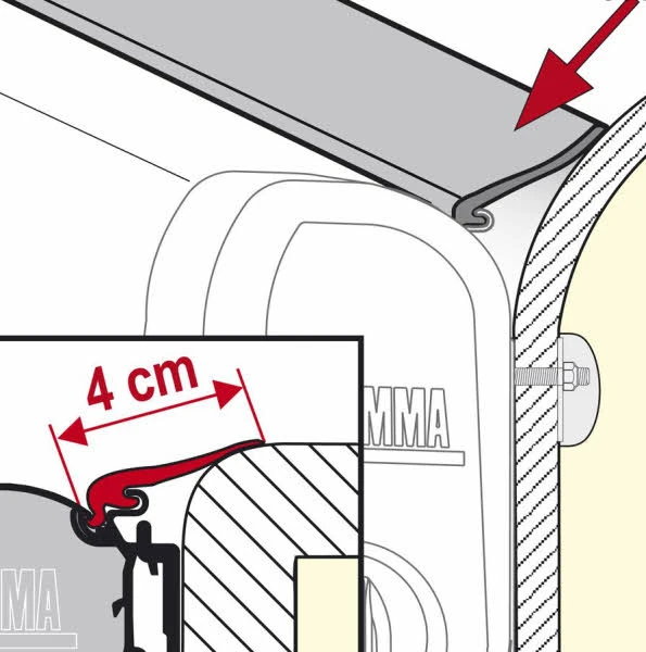 Abdichtung gegen eindringendes Wasser zwischen Markise und Fahrzeugwand. Wird installiert ohne die Markise abzubauen.