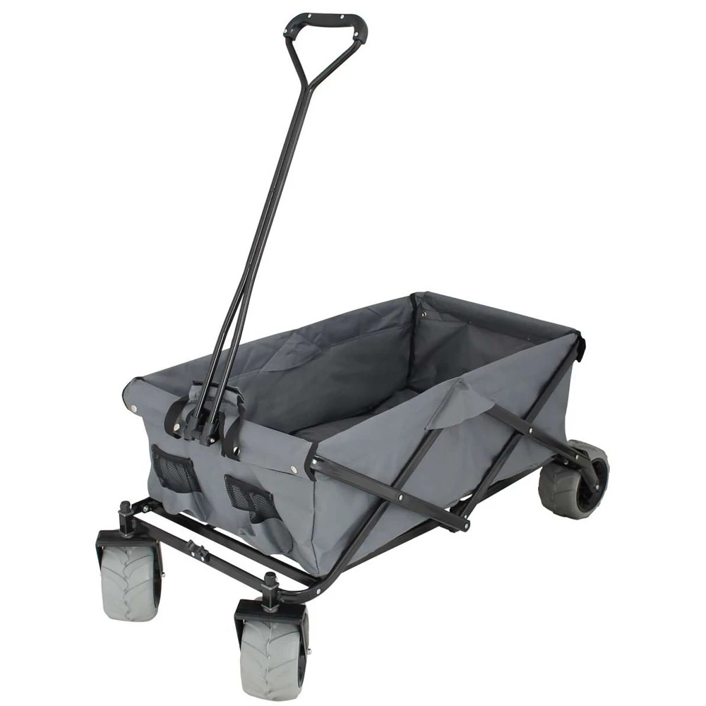 Bei der Entwicklung des Bollerwagens wurden viele Aspekte berücksichtigt, die ihn zu einem äußerst flexiblen Begleiter in der Freizeit machen. Ob am Strand, auf dem Campingplatz oder auch bei einem Festival kommt die leichte und dennoch robuste (Gestell aus beschichtetem Stahlrohr) Bauweise zur Entfaltung: Auch voll beladen – der Wagen hat eine Tragkraft von 75 kg – lässt er sich dank der extra breiten profilierten Räder gut über weichen Untergrund ziehen.
