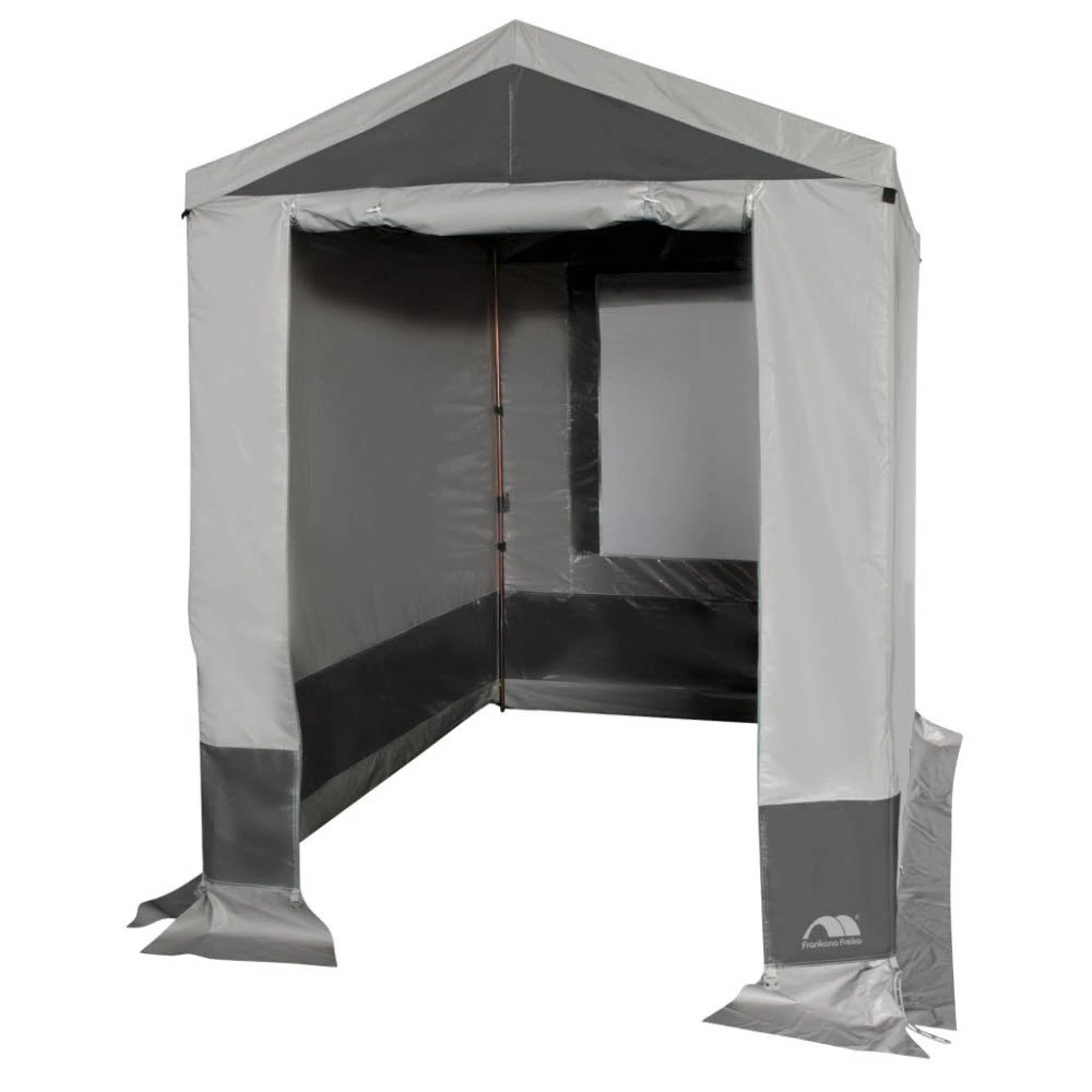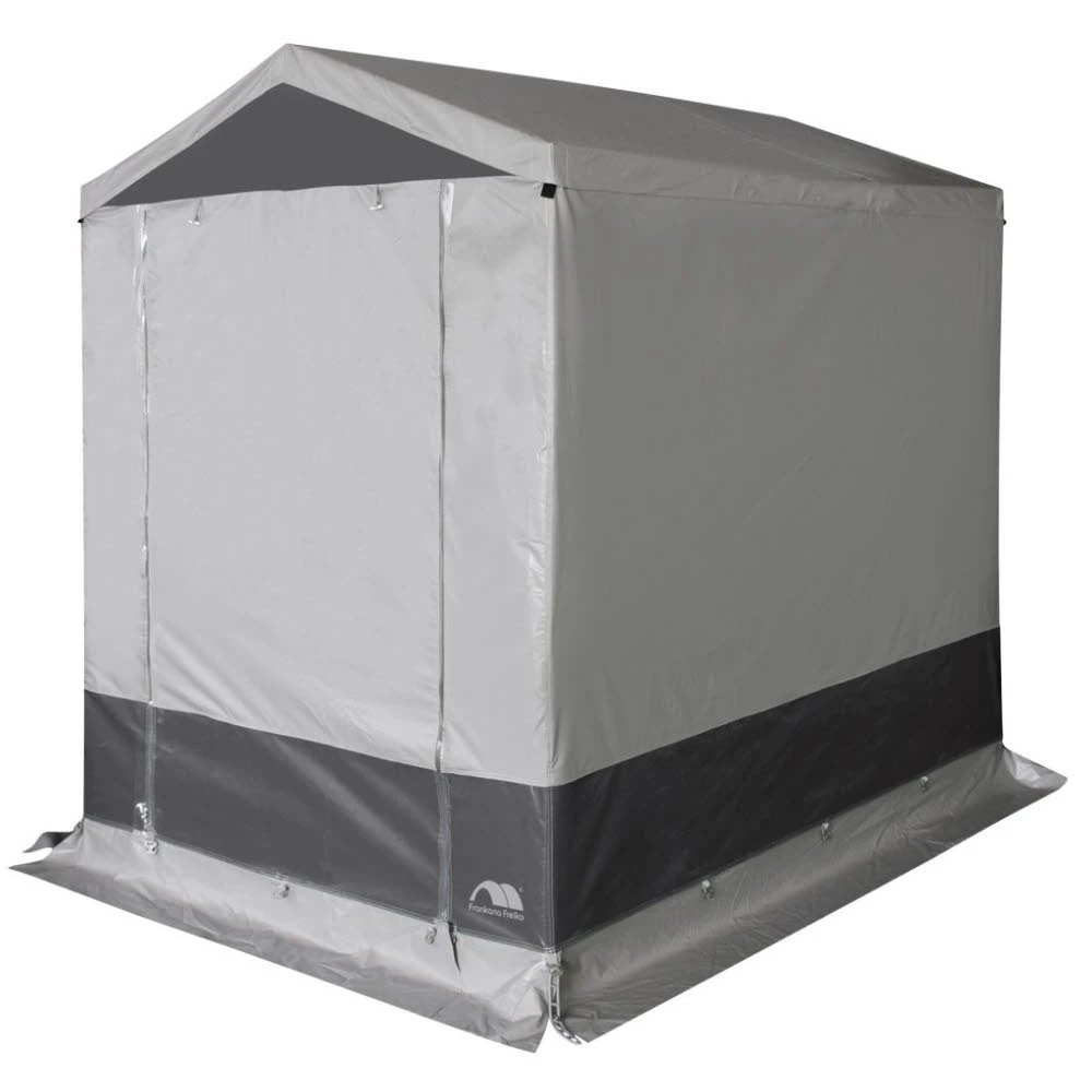Praktisches Gerätezelt für die verschiedensten Einsatzmöglichkeiten. Das Gerätezelt Equibo bietet viel Staufläche und ist kinderleicht aufzubauen. Der Eingang in der Vorderwand ist nach oben rollbar. Auf der Rückseite befindet sich ein großes Belüftungsfenster.