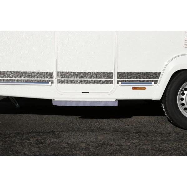 Damit kann bei dieser Art von Caravans ein Klettband per Keder unterhalb der Tür in die Kederleiste eingeführt werden. Das selbstklebende Gegenstück wird dazu auf der Innenseite der Bodenschürze angebracht.