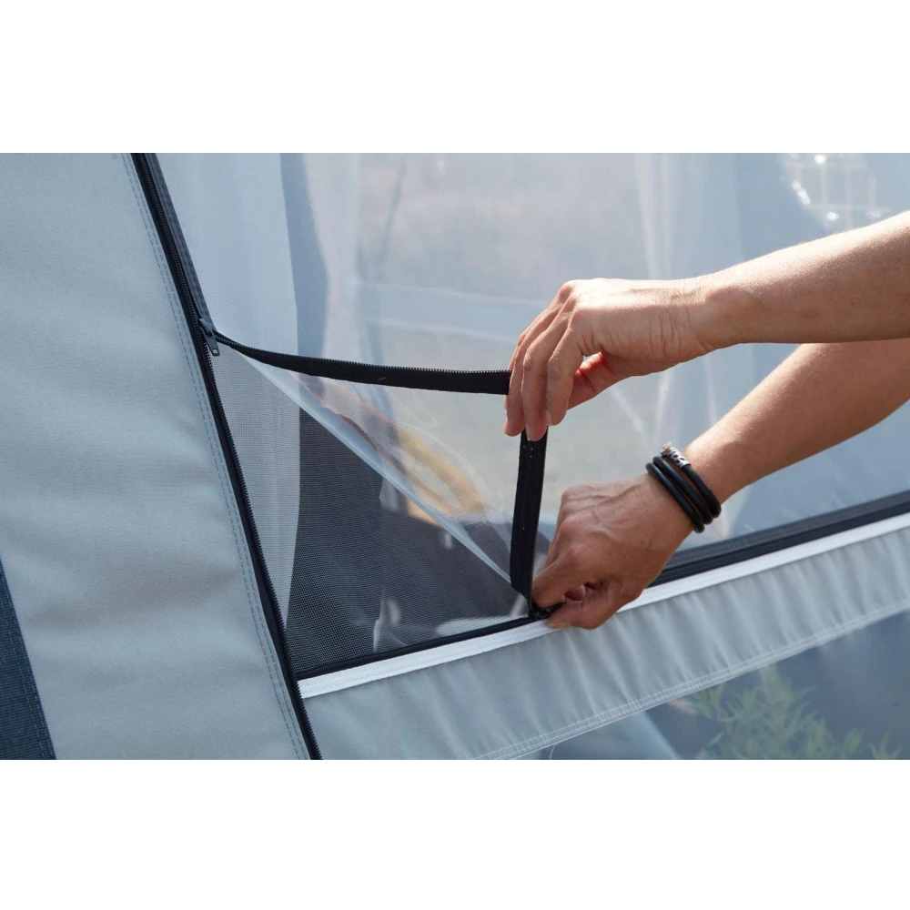 Im Cirrus North ist Platz für die ganze Familie. Mit einer Raumtiefe von 275 cm und senkrechten Seitenwänden bietet das Cirrus viel Platz. Wer mehr möchte, kann zudem auf beiden Seiten eine Air Erweiterung anbauen. Insgesamt könnten Sie so den Wohnraum sogar verdoppeln! Da die Reißverschlussverbindungen für die Erweiterungen der Zeltform folgen entsteht der Eindruck, von innen, als gehörten die Erweiterungen zum eigentlichen Vorzelt.