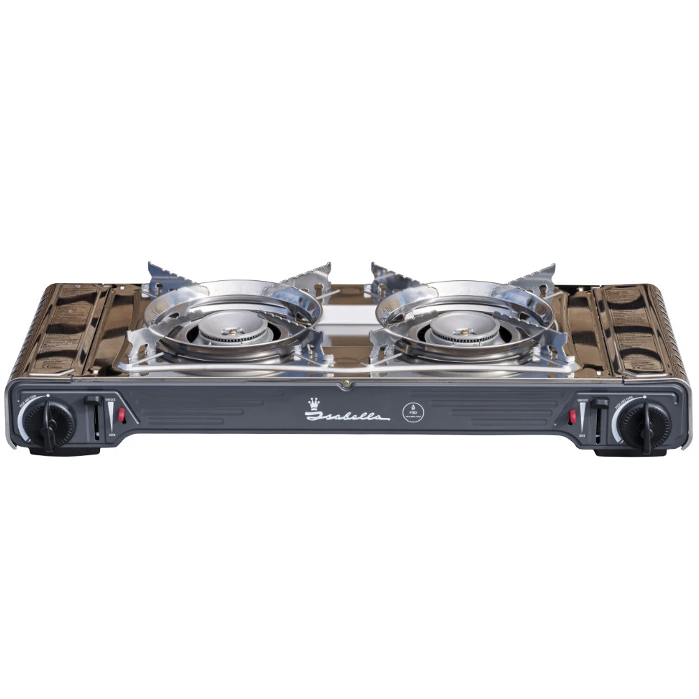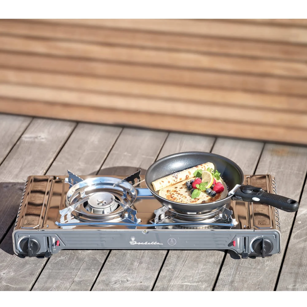 Mit dem zweiflammigen Gaskocher von Isabella können Sie überall Essen kochen, wo Sie wollen: ob auf dem Campingplatz oder irgendwo in freier Wildnis. Der Gaskocher funktioniert ganz ohne Strom und ist äußerst praktisch für unterwegs. Ihrer Outdoor-Kochfantasie sind im Grunde keine Grenzen gesetzt.