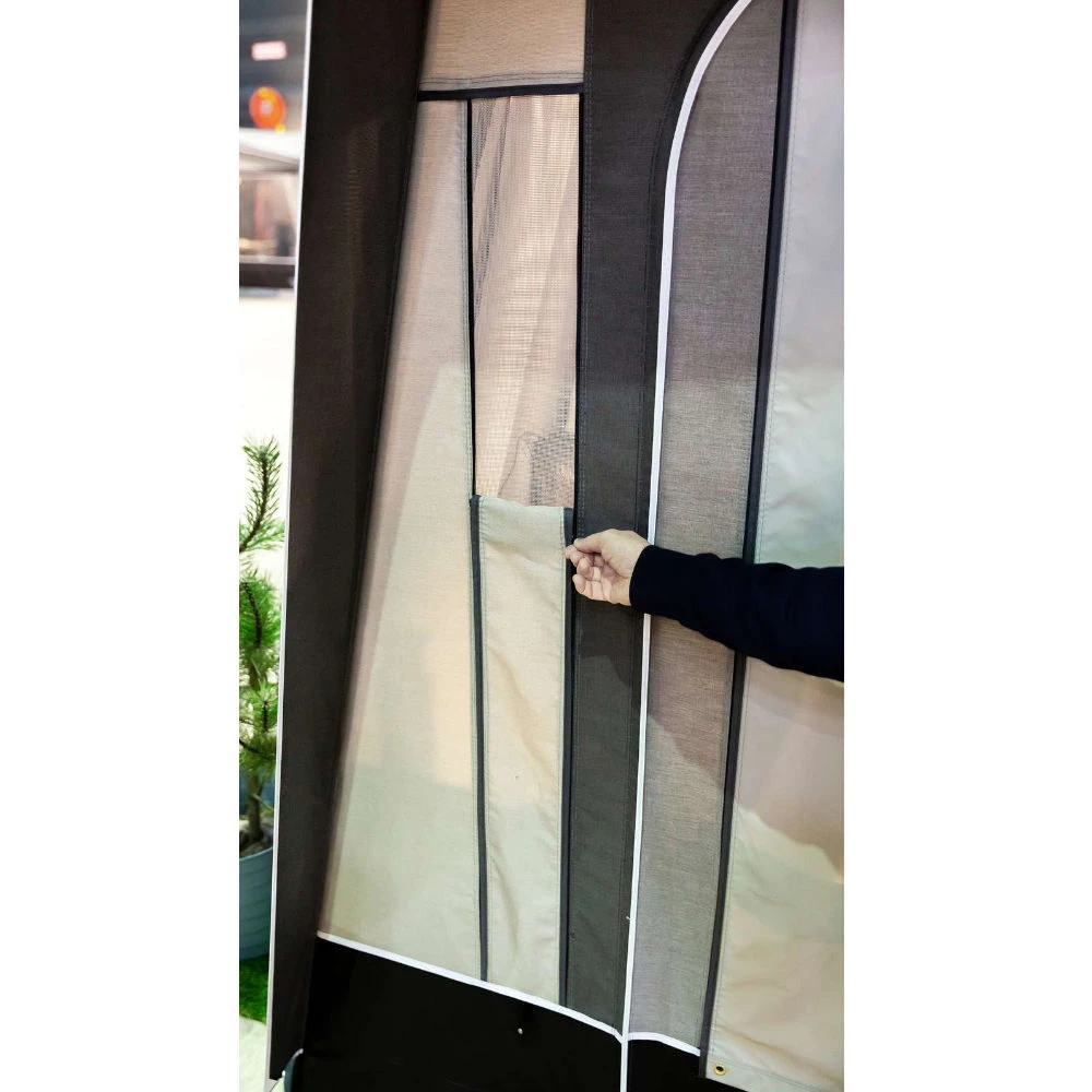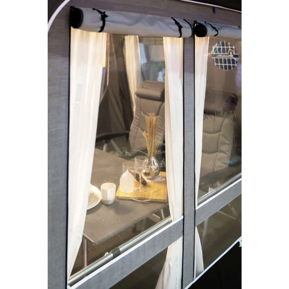- außenliegende Fensterabdeckungen ringsum, um das Vorzelt optisch komplett zu schließen