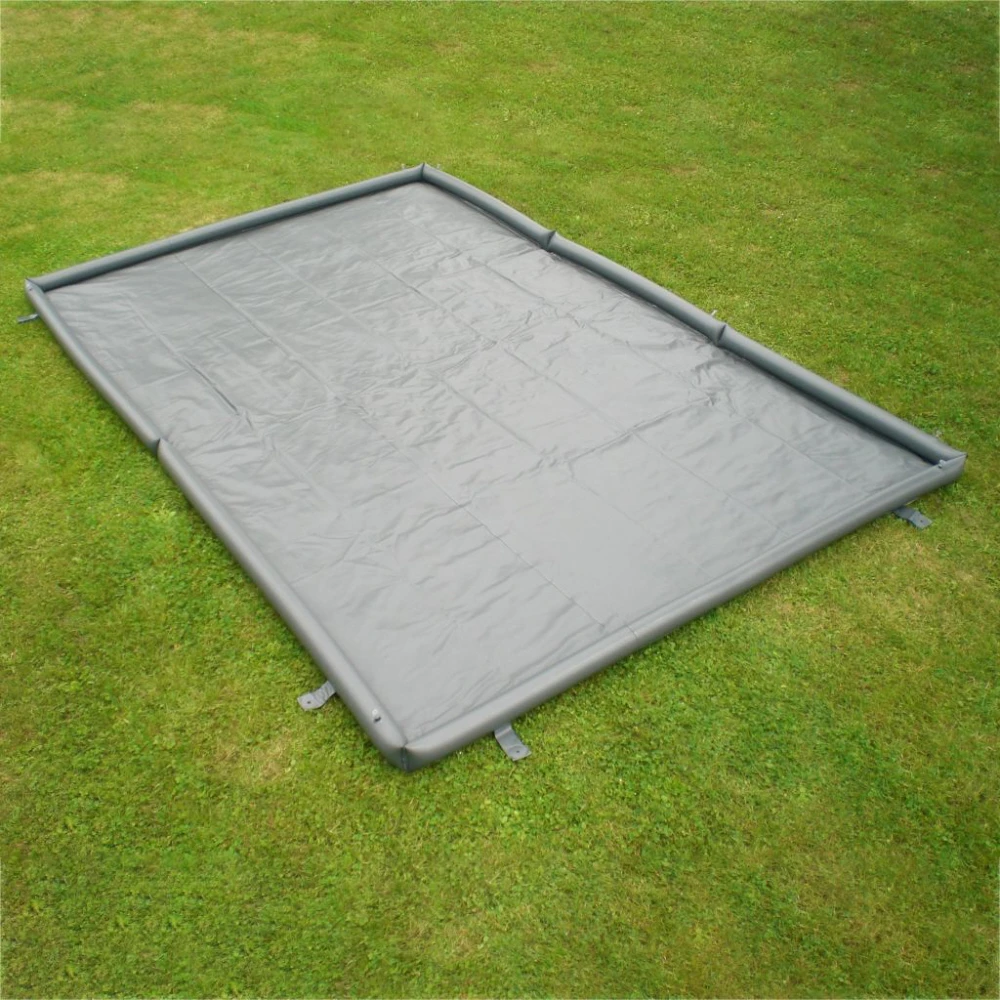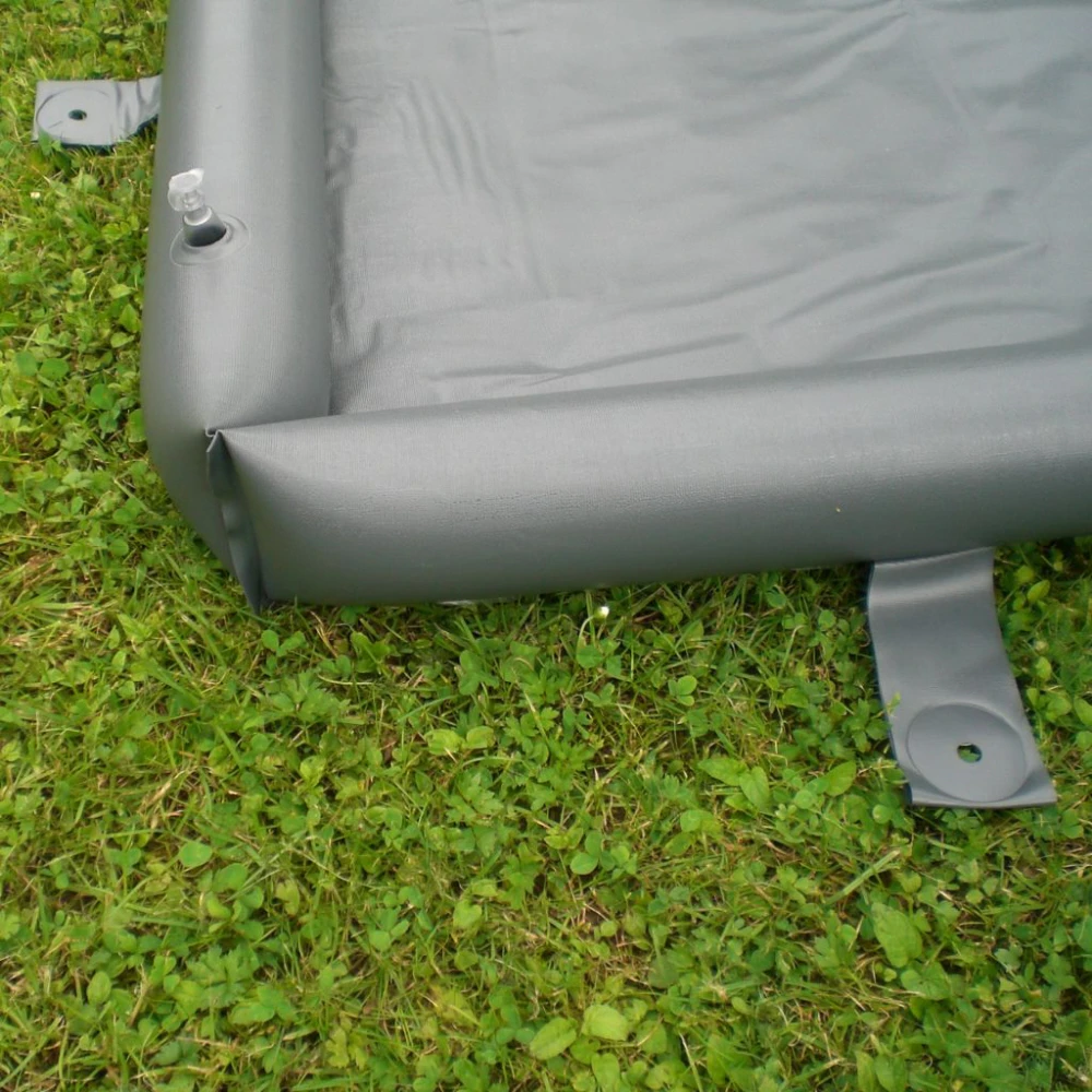 Schluss mit überschwemmten Vorzelt-Teppichen und schmutzigem Inventar nach Regenschauern. Einfach die Seitenränder der neuen Wasserschutzplane aufblasen und warten bis der Regenguss vorbei ist. Für alle Vorzelte, Zelte und Pavillons. Die Wasserschutzplane wird auf Maß, im 10 cm Raster gefertigt. Die Seitenränder sind in mehrere Kammern aufgeteilt. Somit können die Kammern die sich in den Durchgängen befinden, erst aufgeblasen werden, wenn Gefahr droht.