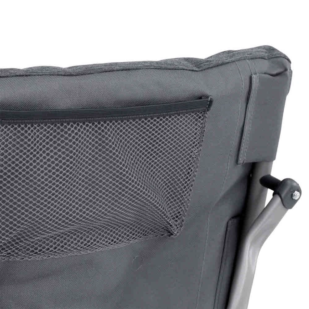 Eigenschaften: öffnet und faltet sich in Sekundenschnelle, keine Montage erforderlich, hochfester robuster Stahl, praktische Taschen an einer Armlehne, bequemer gepolsterter Sitz und Rückenlehne, verbesserte Armlehnenkonstruktion für gute Unterstützung, inklusive Tragetasche für einfache Aufbewahrung und Transport.