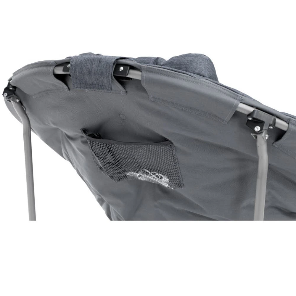 Eigenschaften: öffnet und faltet sich in Sekundenschnelle, keine Montage erforderlich, hochfester robuster Stahl, praktische Taschen an einer Armlehne, bequemer gepolsterter Sitz und Rückenlehne, verbesserte Armlehnenkonstruktion für gute Unterstützung, inklusive Tragetasche für einfache Aufbewahrung und Transport.