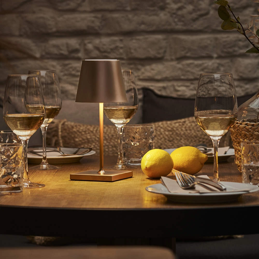 Innen und Außen: Die dimmbare Akku-Tischleuchte für den Wohn- und Außenbereich hält dank Schutzklasse IP54 (spritzwassergeschützt) auch Regenschauer aus.