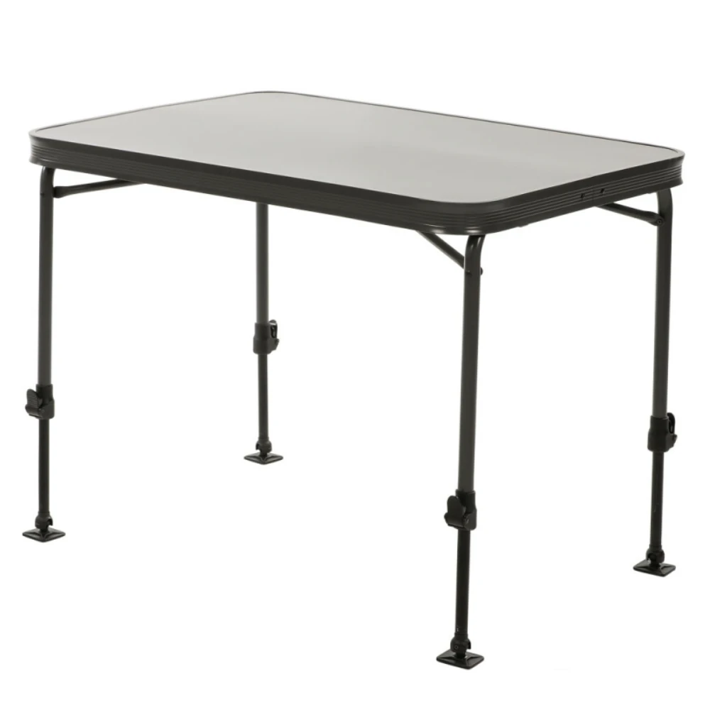 Der Alba-Tisch besteht aus einem Aluminiumrahmen mit einer Tischplatte aus Kunststoff, ist daher sehr leicht und lässt sich einfach überallhin mitnehmen. Die Kunststoff-Tischplatte ist kratzfest und hitzebeständig bis 100 Grad C. Einfache Höhenverstellung durch Schiebesystem.