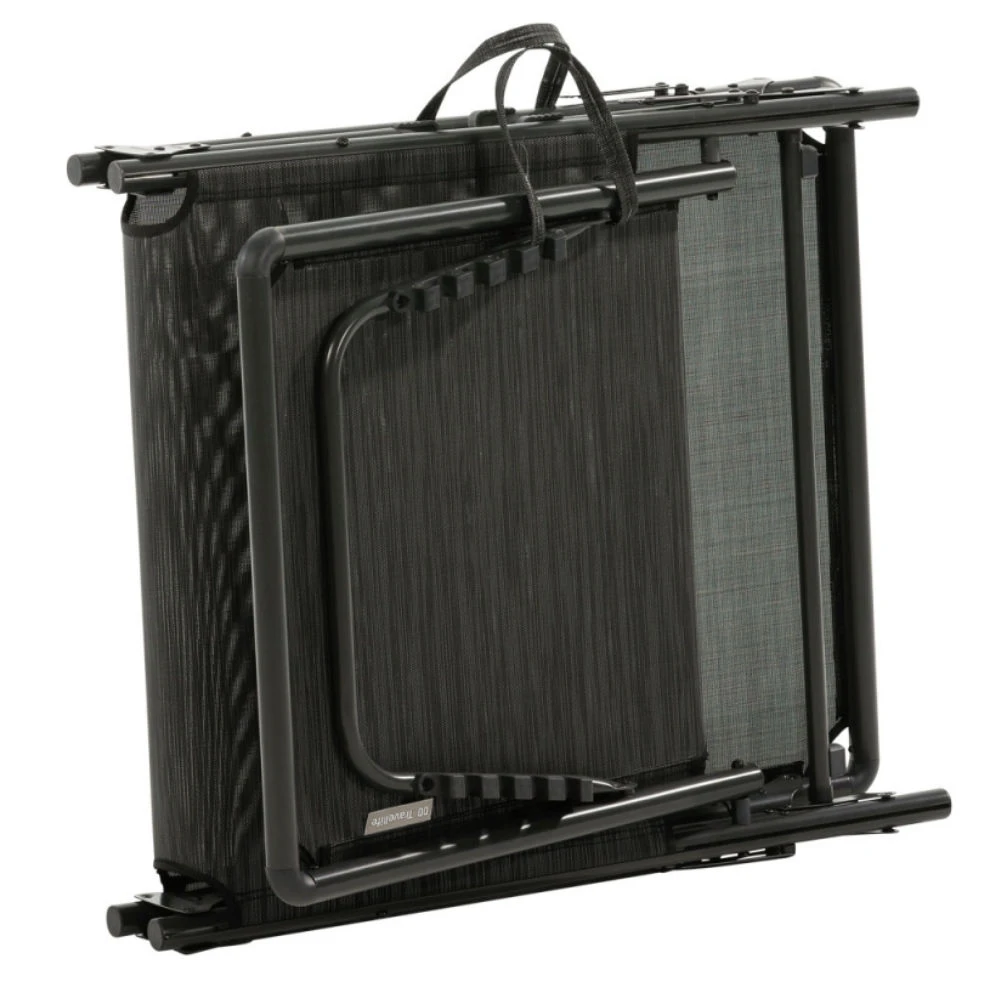 Legen Sie die faltbare Como-Liege zurück und entspannen Sie sich. Die Sonnenliege hat einen Bezug aus Textilene (100 % Polyester): ein wetterfestes und atmungsaktives Material. Die Farbe des Stoffes verblasst nicht und trocknet schnell. Dank der Tragegurte und des leichten Gestells ist die Liege leicht zu transportieren.