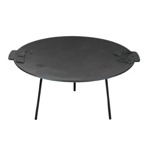 Robuste Schale aus Gusseisen mit Stahlfüßen. Mit einem natürlichen Öl vorbehandelt und direkt einsatzfähig.