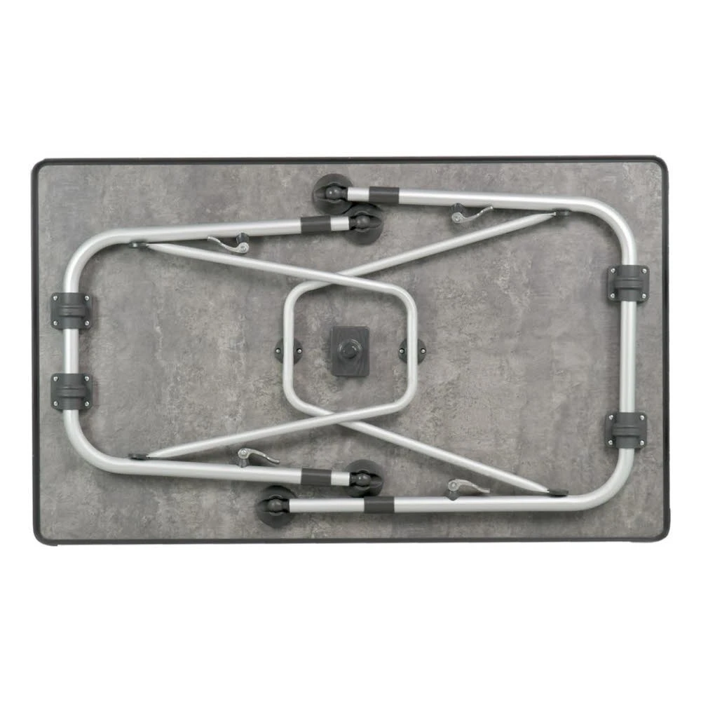 Sehr standfester Aluminiumrohr-Tisch mit einer einzigartigen, einfach zu bedienenden Exzenterverriegelung. Alle 4 Beine sind stufenlos höhenverstellbar und stabil. Tellerfüße ermöglichen einen stabilen Stand, sind Teppich schonend und verhindern das Einsinken in weiche Böden. Schnellverschluss zur problemlosen Höhenverstellung der Beine. Wetterfeste Tischplatte.