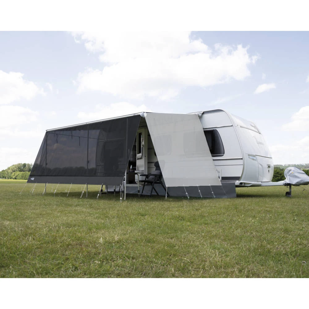 Ganz egal wo Sie stehen: Dieser luftdurchlässige Sunscreen sorgt dafür, dass Sie den Blick in die Landschaft trotzdem ohne Einschränkung genießen und die frische Meeres-, Wald- oder Bergluft einatmen können. Die Vorderwand wird einfach in die Kederschiene der Markise eingezogen.