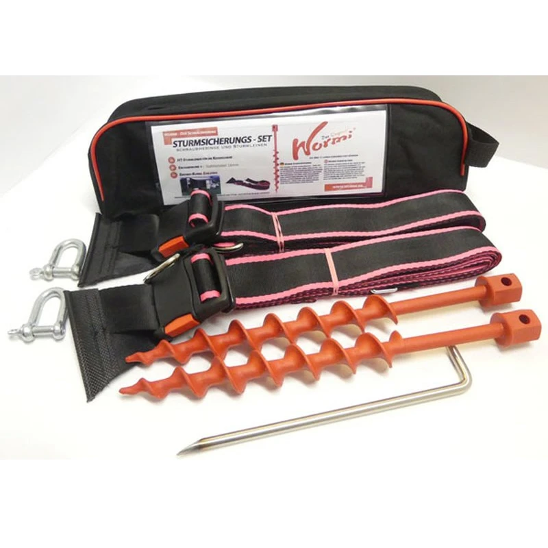 Mit diesem bewährten Erdsandwurm und der HT-Sturmleine bieten wir nun die perfekte Lösung für die Sicherung Ihrer Markise oder Ihres Vorzeltes.